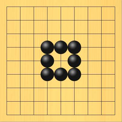 交点を石で囲かこった部分のことで生きるために必要ひつようなもの。下の図の形が眼めです。これを2つつなげると生きることができます。
